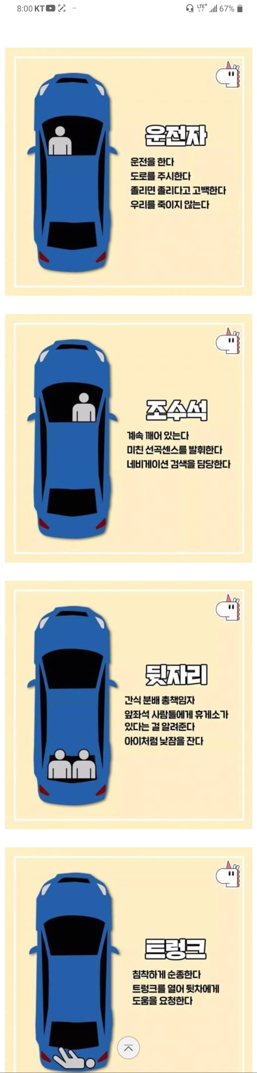 | Subject | 휴가철 자동차 각 좌석별 임무 |