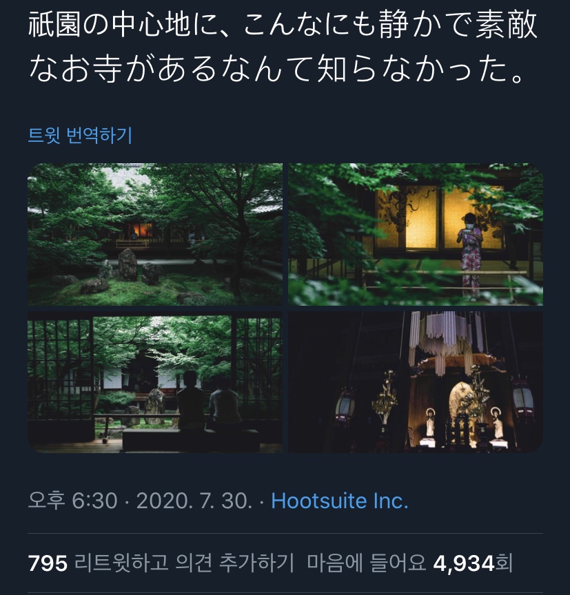 기온은 현재 덥습니다. 그것이 일본 교토니까. 하여튼 일본어로 그렇게 쓰여있습니다. https://twitter.com/riki_s7_/status/1288768927665971202?s=21 장소는 비밀 후후후 안 가르쳐줄거야!! 0