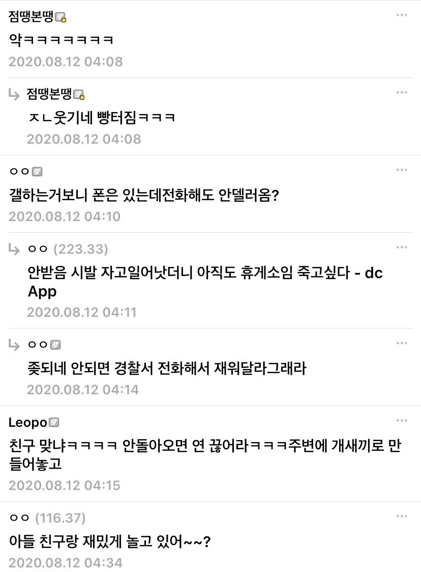 https://m.dcinside.com/board/apple1004ga/932414 위 링크가 후기입니다 후기까지 보니까 이건 장난이라고 하기엔 선 넘은거 같은데요... 숨어있다 나와야 장난인거지..3시간 지나서 왔다니.. 0