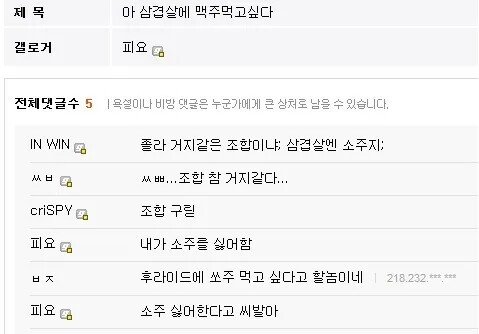 Subject   삼겹살에 맥주가 먹고싶은 디씨인