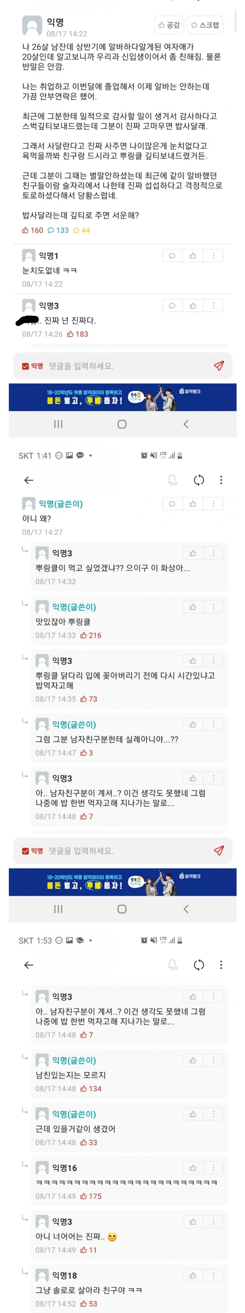| Subject | 밥 사달라는데 깊티로 주면 서운해? |