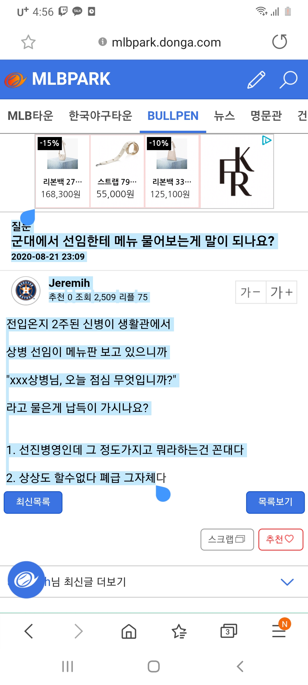 47024 군대에서 선임한테 메뉴 물어보는게 말이 되나요? 12 swear 20/08/22 4764 1