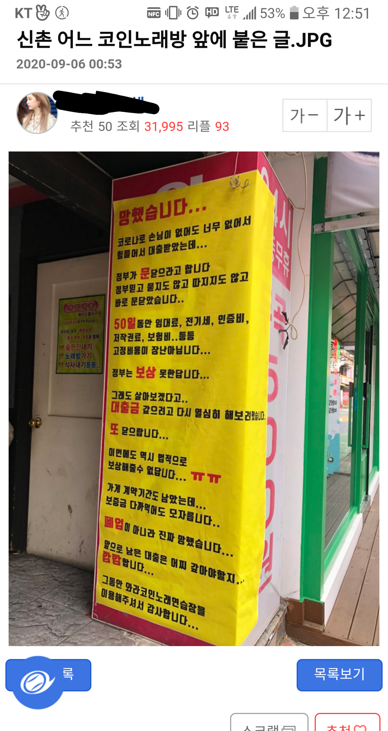 | Subject | 신촌 어느 코인노래방 앞에 붙은 글 |