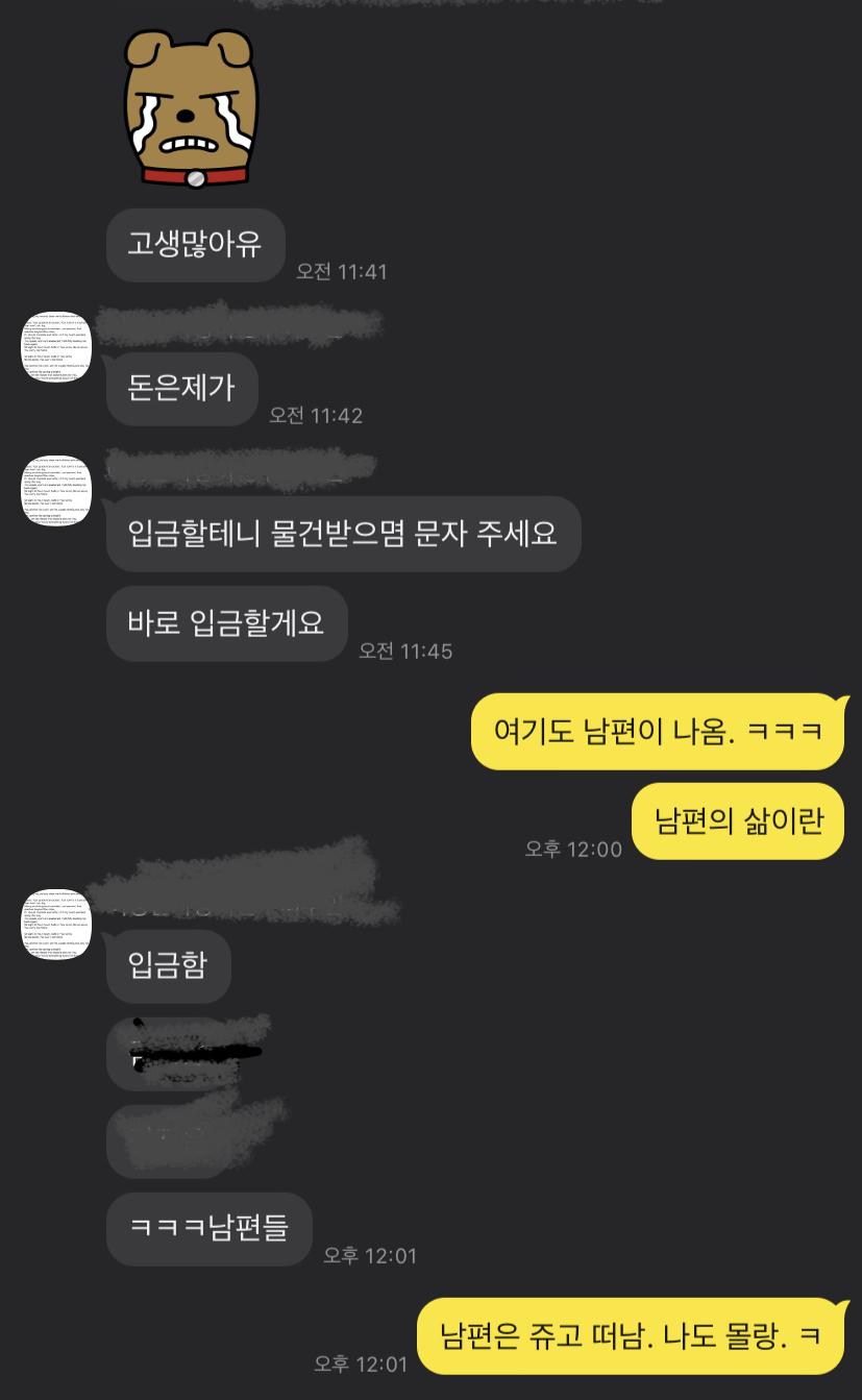 | Subject | 당근마켓 직거래 심부름하는 남편들 근황 |