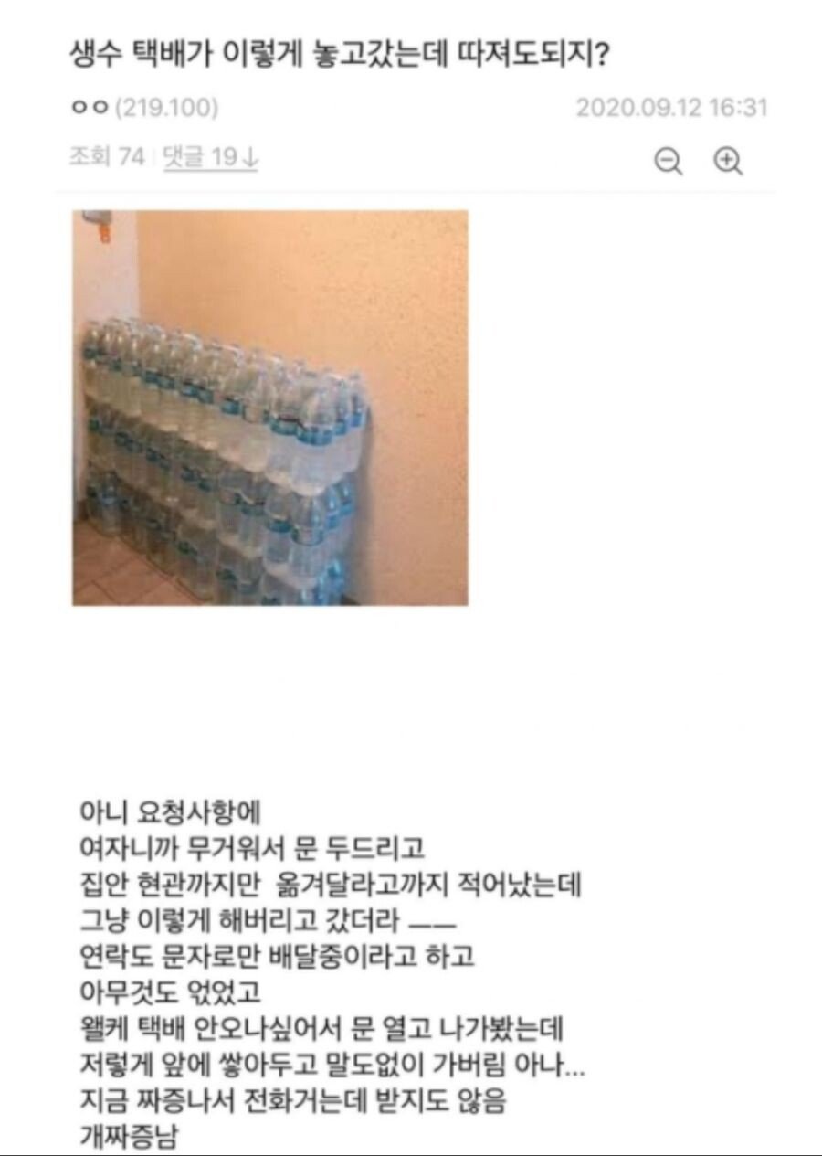 ------------------ 타 커뮤 여기저기들에서 돌던 생수 논란 2년전 사진 가지고 저랬다고합니다. 이 글이 주작일지는 저도 모름. 여튼 넷상 썰은 조심히 보시옵소서. 특히 디씨는....거슬러 올라가면 저질임빠때부터 팬코와 안티팬코와 역과 그 역이 혼재되어있기에... https://m.fmkorea.com/best/3094733448 0