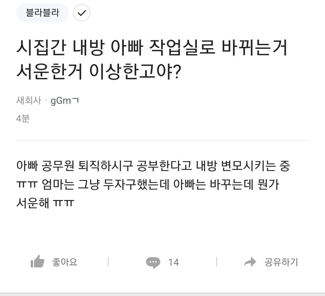 | Subject | 자기 방 없애는게 서운한 딸 |