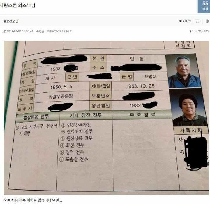 할아버지 군경력 레전드 0
