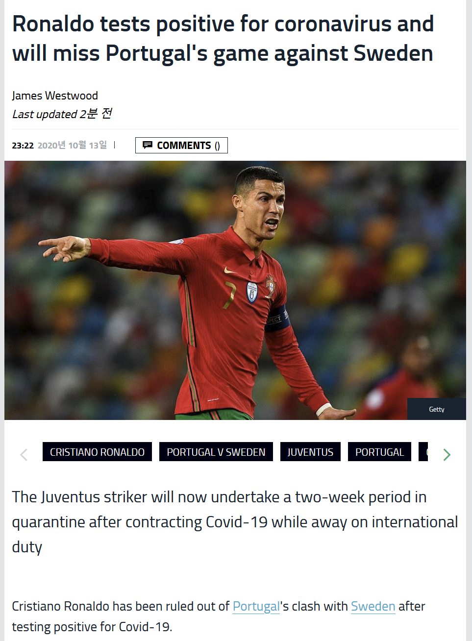 얼마 전에 도난 사건 있었던 마데이라 집에 잠시 들렸다가 리스본에서 대표팀 합류했었습니다. 스웨덴 전에는 당연히 못 나간다고.