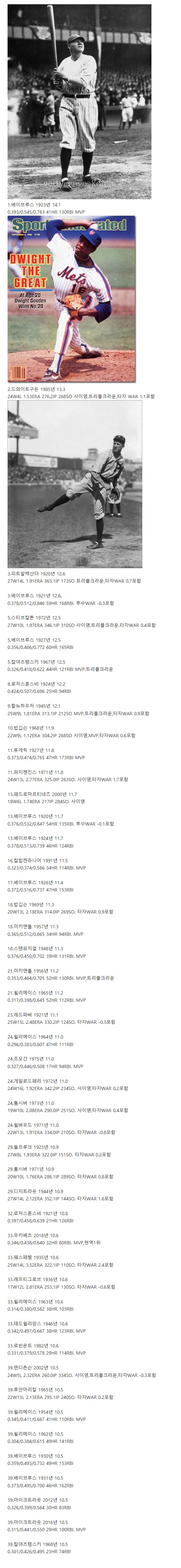 48077 MLB 단일시즌 WAR순위(1920년이후).jpg 1 김치찌개 20/10/18 9270 1