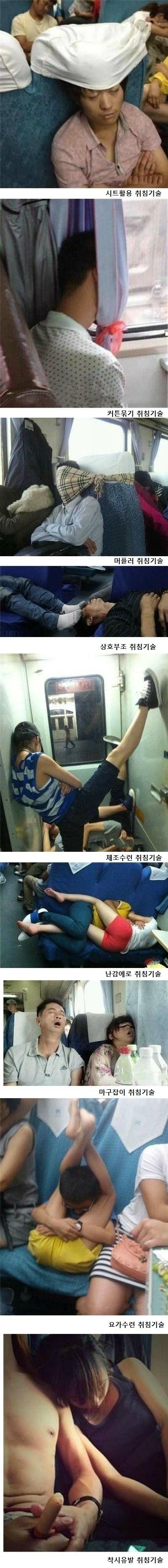 먼 거리를 갈 경우 기차로 며칠씩 타고 가니 자는 방법도 가지각색이군요. 0