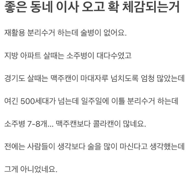 | Subject | 좋은동네 이사오고 확 체감되는거 |
