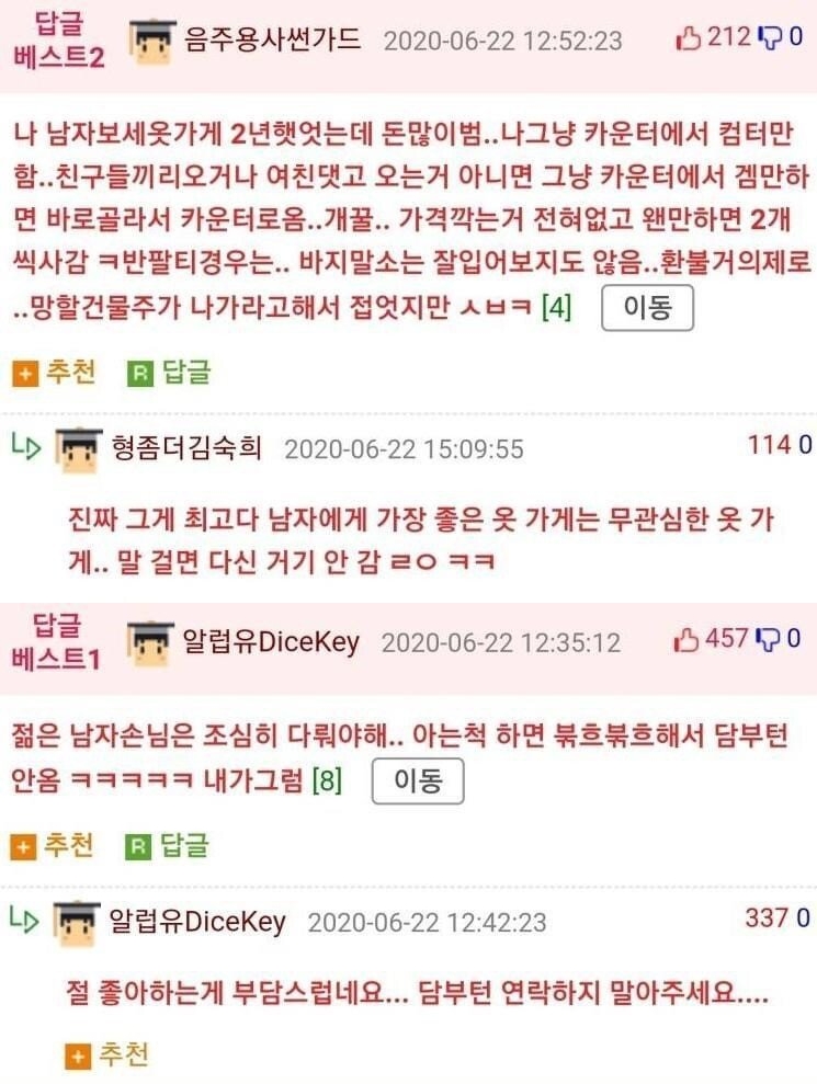 ㅋㅋㅋㅋ 무케어가 최고의 케어 ㅋㅋㅋㅋ 케어 해주면 되레 맴속으로 컴플레인 이빠이 걸고 있음.. 실제론 컴플레인 하지도 않고 담부터 안 갈 뿐 스몰 토크 없는 매장이 좋은 매장 ㅋㅋㅋㅋ 아마 제발 날 챙겨주지 마세요가 모두의 소망일 듯 ㅋ 7