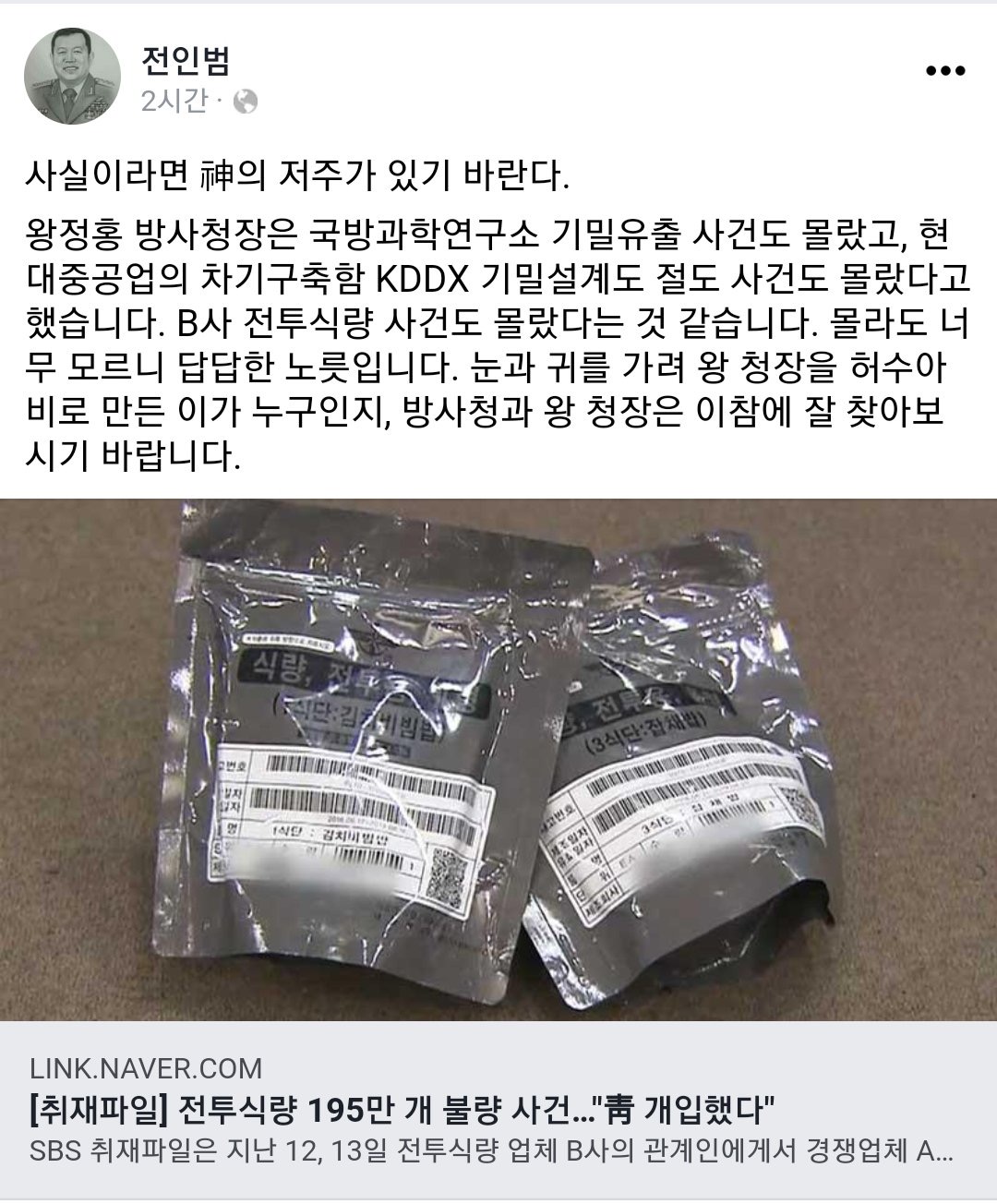 | Subject | 전인범 전 사령관의 방산비리 일갈 |