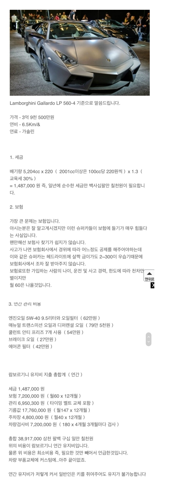 | Subject | 4억짜리 슈퍼카 1년 유지비.jpg |