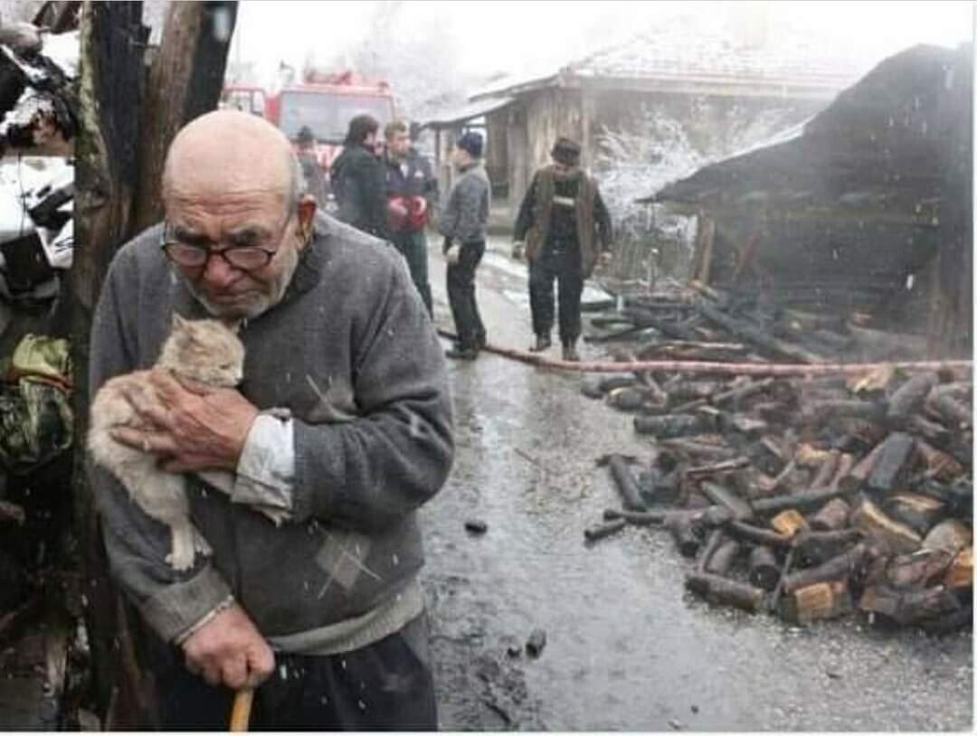 | Subject | 화재현장에서 구출된 고양이를 끌어안고 눈물 흘리는 할아버지 |