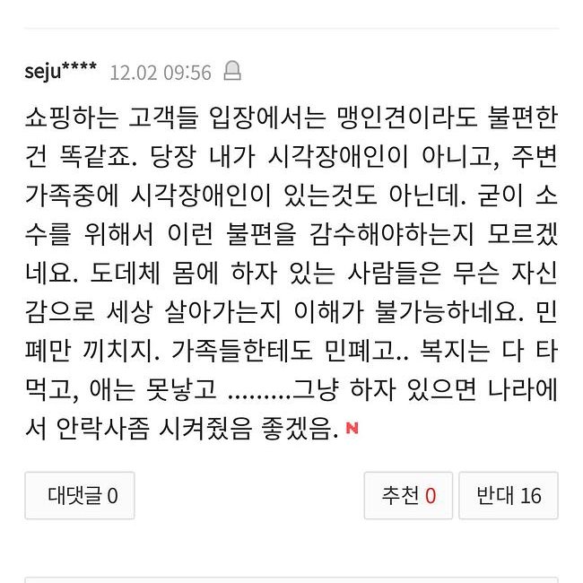 | Subject | [블랙] 롯데마트 안내견 사건 관련 모 댓글 |