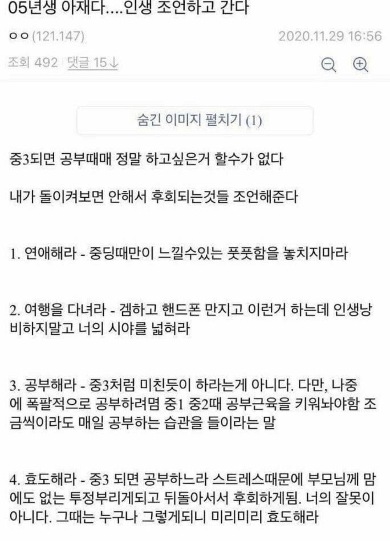Subject   05년생 아재의 인생 조언