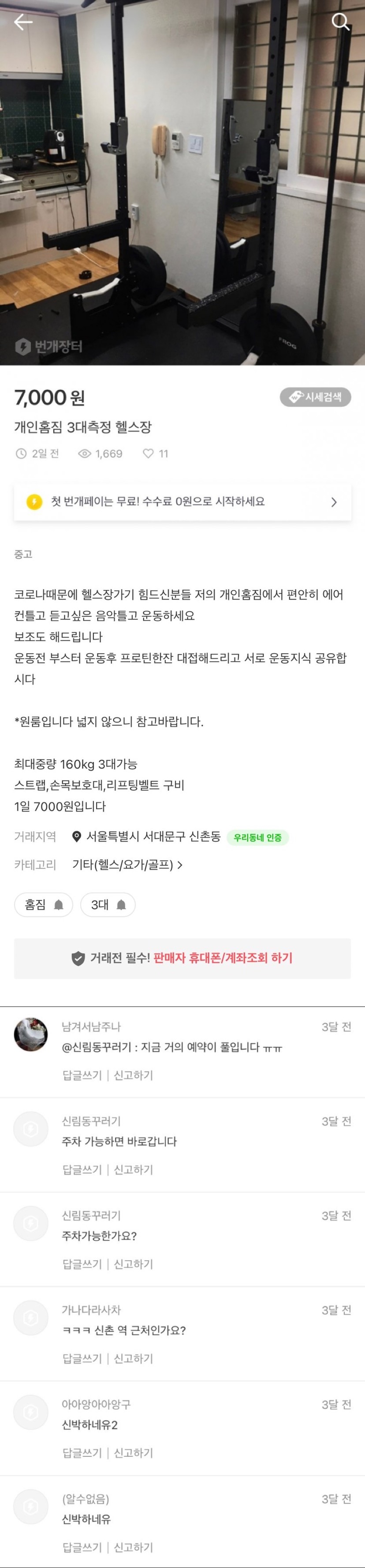 번개장터에서 원룸 개방해서 헬스;;; 0