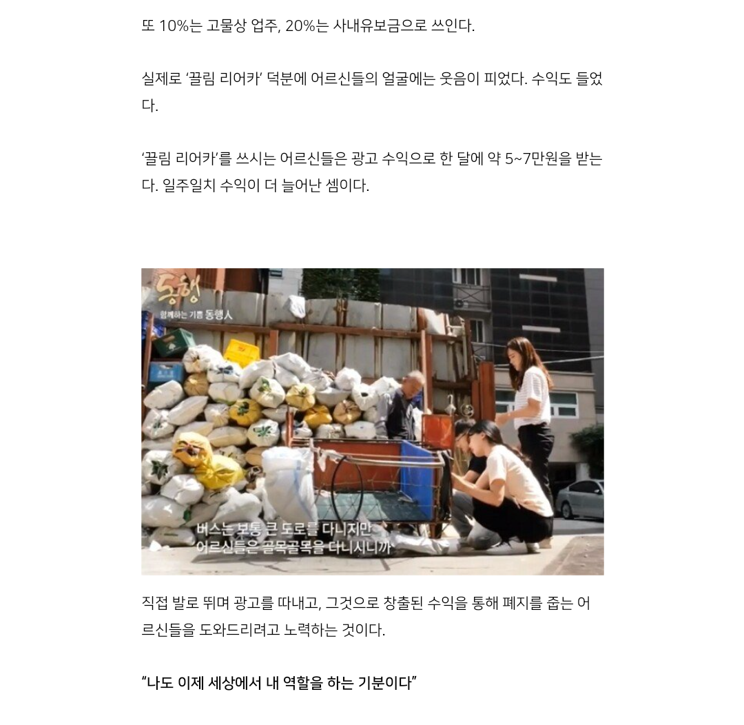| Subject | 폐지줍는 어르신들 리어카에 순대국밥집 광고가 붙은 이유 |