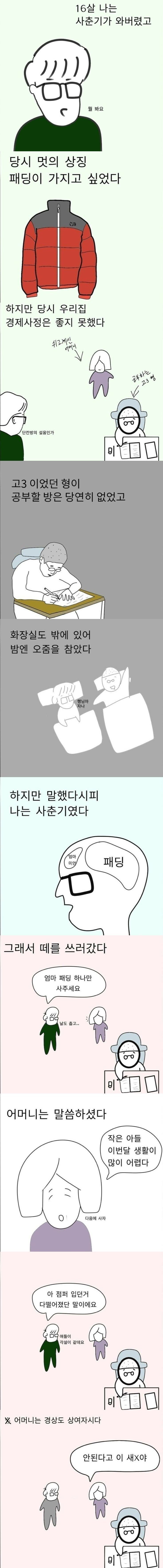 고3 졸업할때까지 겨울에  교복마이 말고 뭐 입어본 적이 없읍니다..