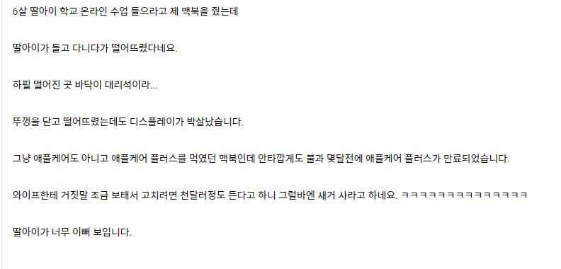 Subject   딸아이가 맥북을 부셔놨다.