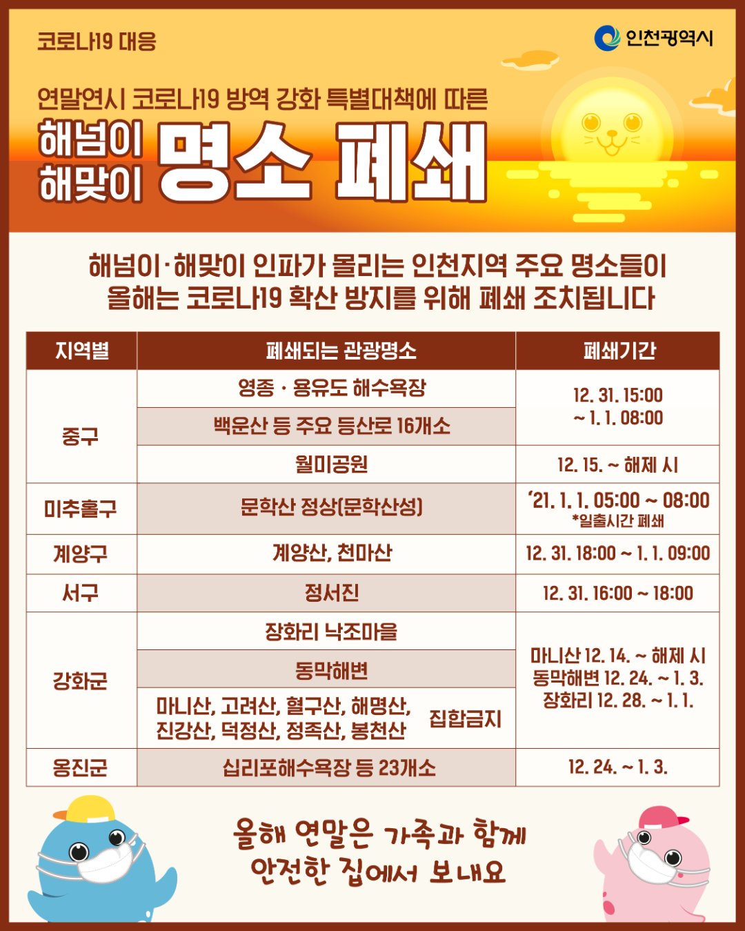 제발 해돋이는 온라인으로 봅시다... (본인 거주 광역 행정구역도 이렇게나 막아대는데...) https://twitter.com/incheon_gov/status/1343814150384840704 2