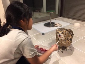 먹이 먹고 신난 부엉이 표정