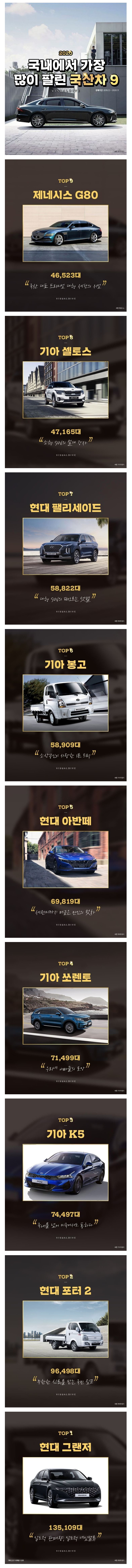 | Subject | 2020 베스트셀러 국산자동차 Top9 |