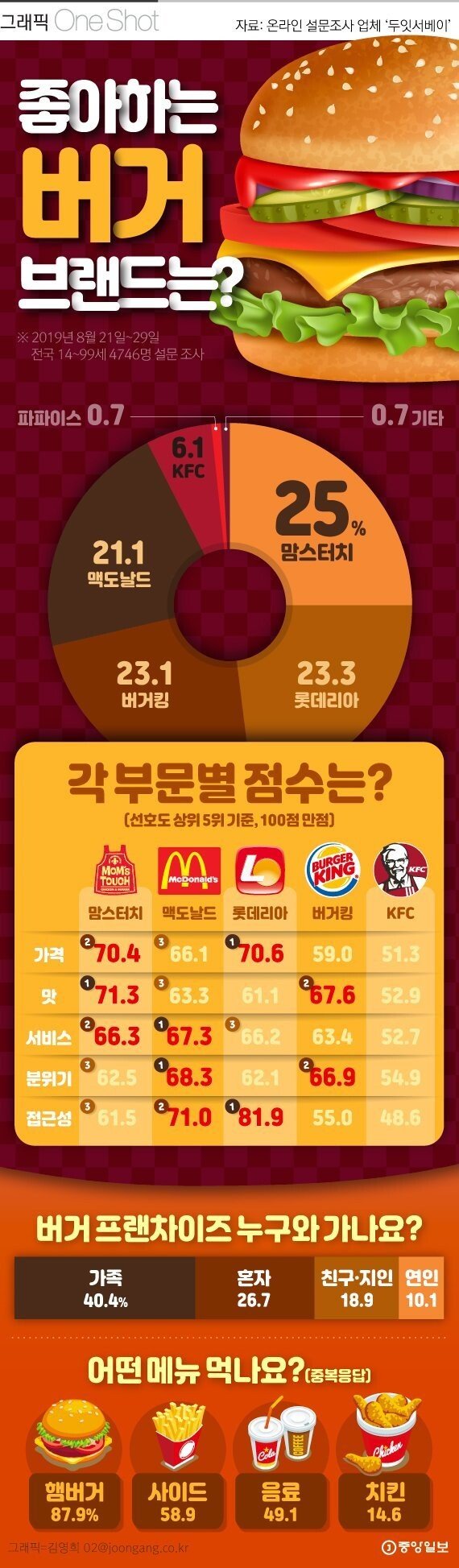 맘터랑 롯데리아가 1,2위를 다투긴 하는데 맥날이나 버거킹이랑 크게 차이나진 않는군요.. 0