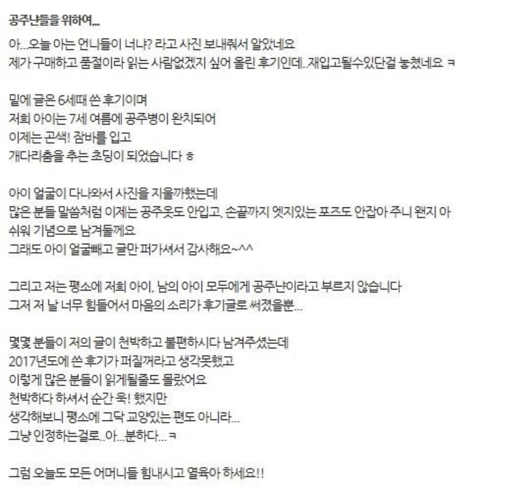 | Subject | 공주냔 드레스 리뷰 썼던 엄마의 후기 |