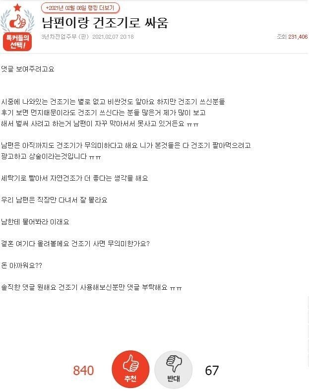 | Subject | [pann] 남편이랑 건조기로 싸움 |