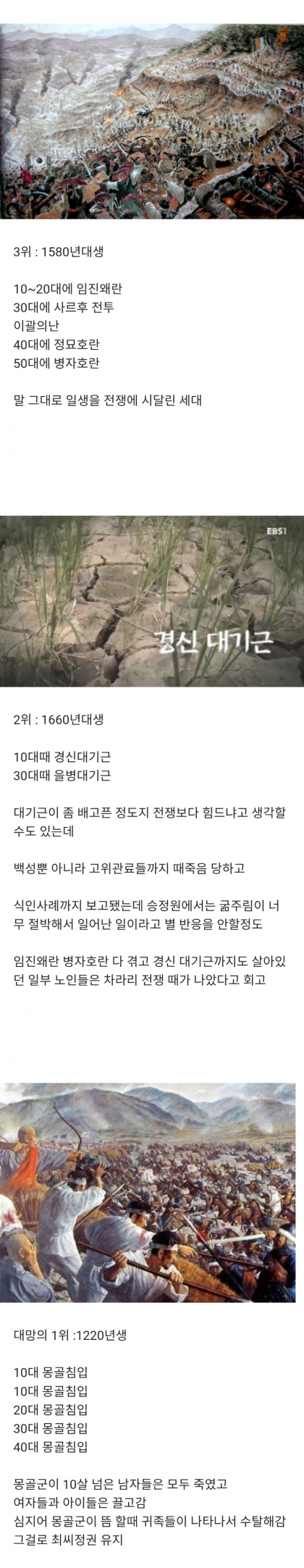 | Subject | 한반도 역사상 가장 저주받은 세대 TOP3 |