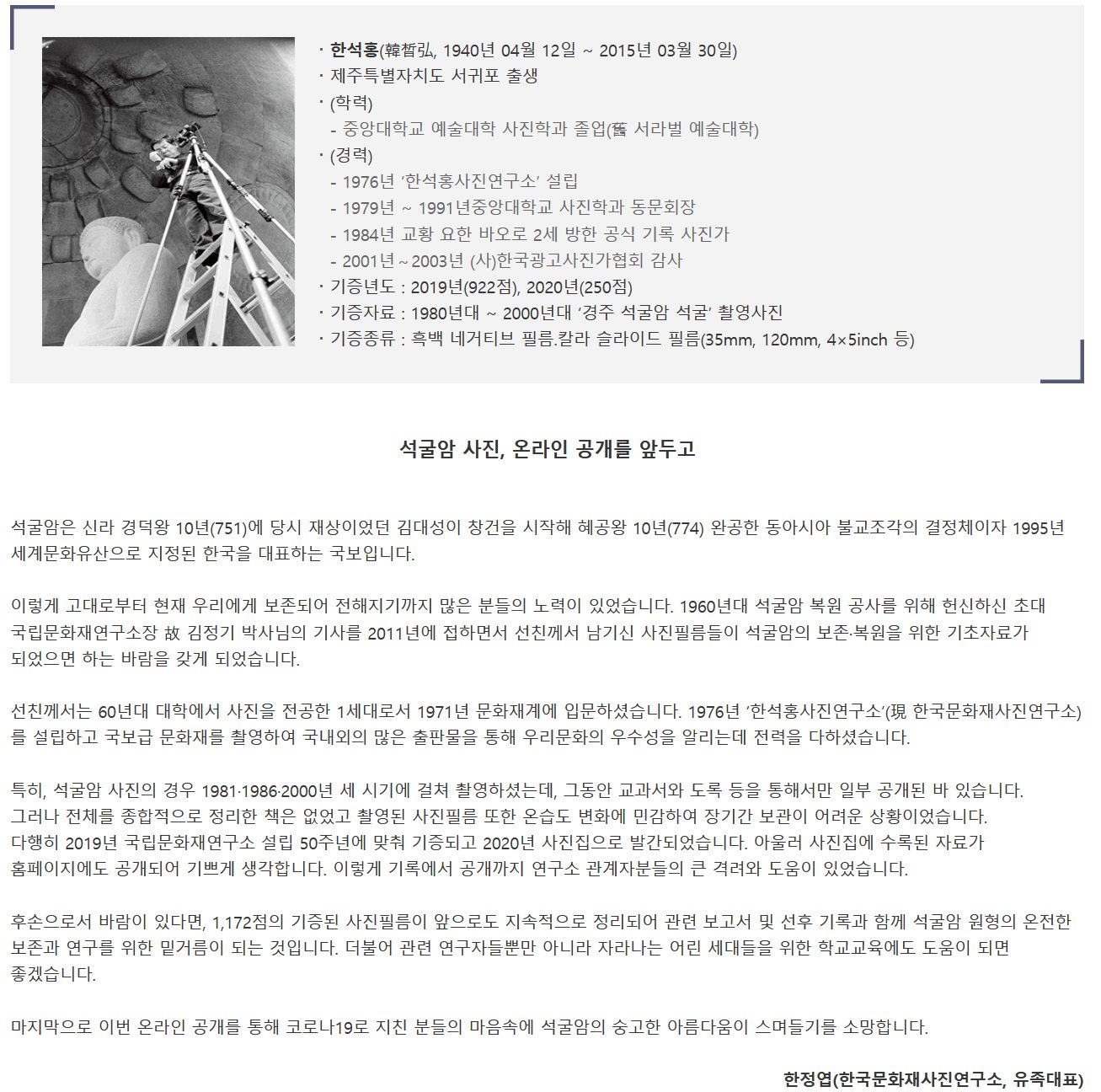 | Subject | 故 한석홍 기증「경주 석굴암」사진 69건 자유롭게 내려받기 가능 |