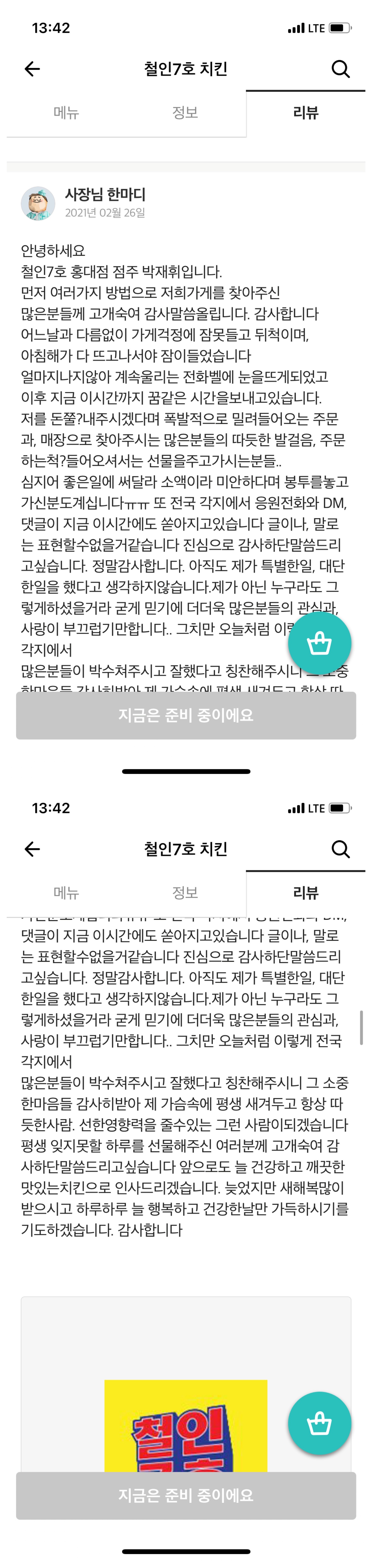 | Subject | 닭집 사장님에게 도착한 뜻밖의 손편지 |