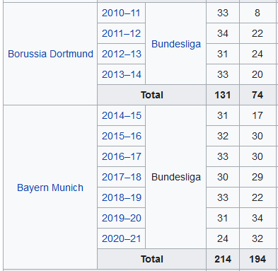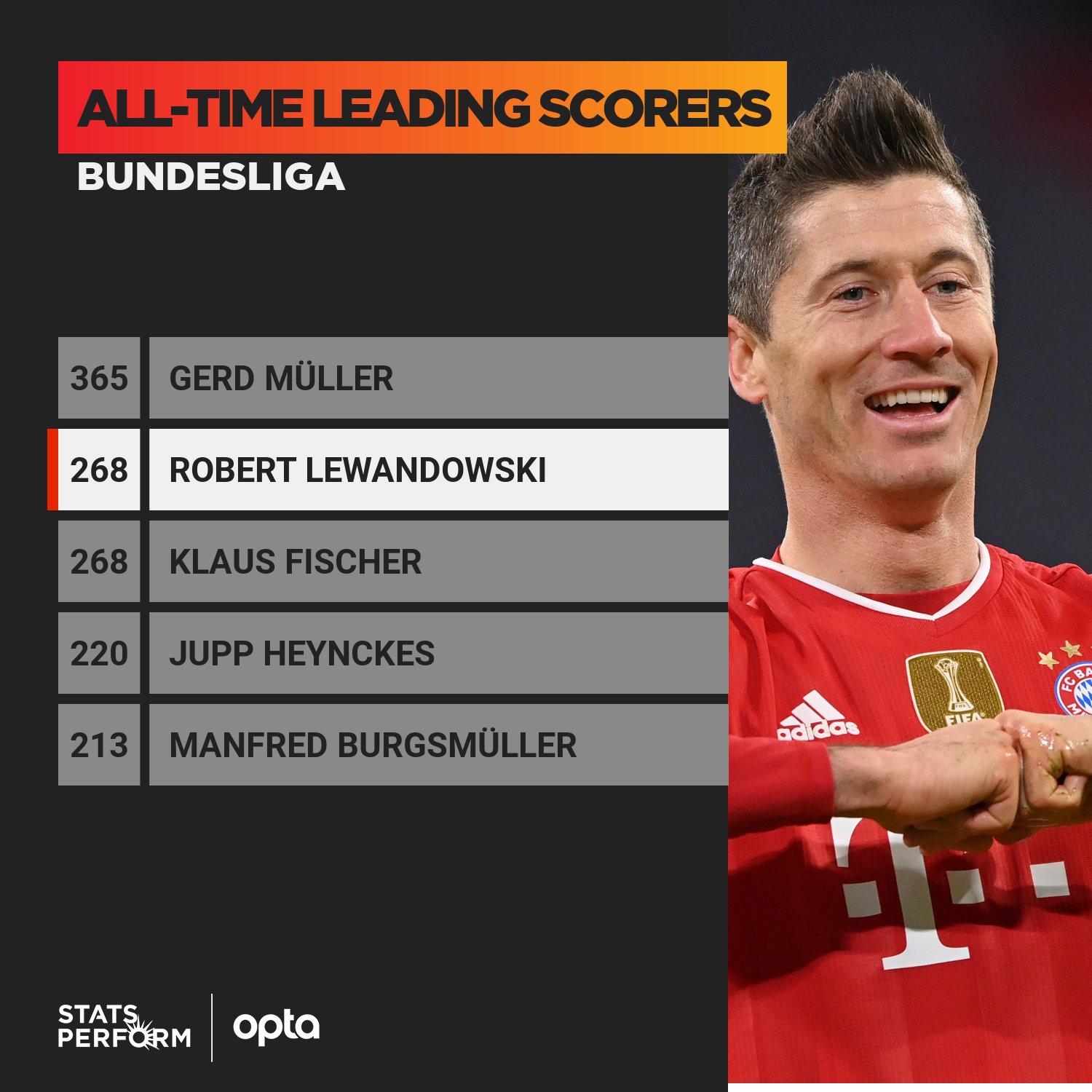 레반도프스키가 클라우스 피셔의 분데스리가 268골을 따라잡았습니다. 1위는 그보다도 훨씬 멀리 있어서 따라갈 수 있을지가 문제인데... 1위까지 안가도 정말 대단한 기록입니다. 참고로 이 셋의 분데스리가 통산 기록은 다음과 같습니다. 클라우스 피셔 535경기 268골 레반도프스키 345경기 268골 게르트 뮐러 427경기 365골 대신 게르트 뮐러가 가지고 있는 분데스리가 단일 시즌 최다골은 레반도프스키가 갱신을 노리고 있습니다. 게르트 뮐러가 기록한 골은 40골, 레반도프스키는 9경기를 남긴 상태에서 오늘 리그 32호골을 넣었네요. 0