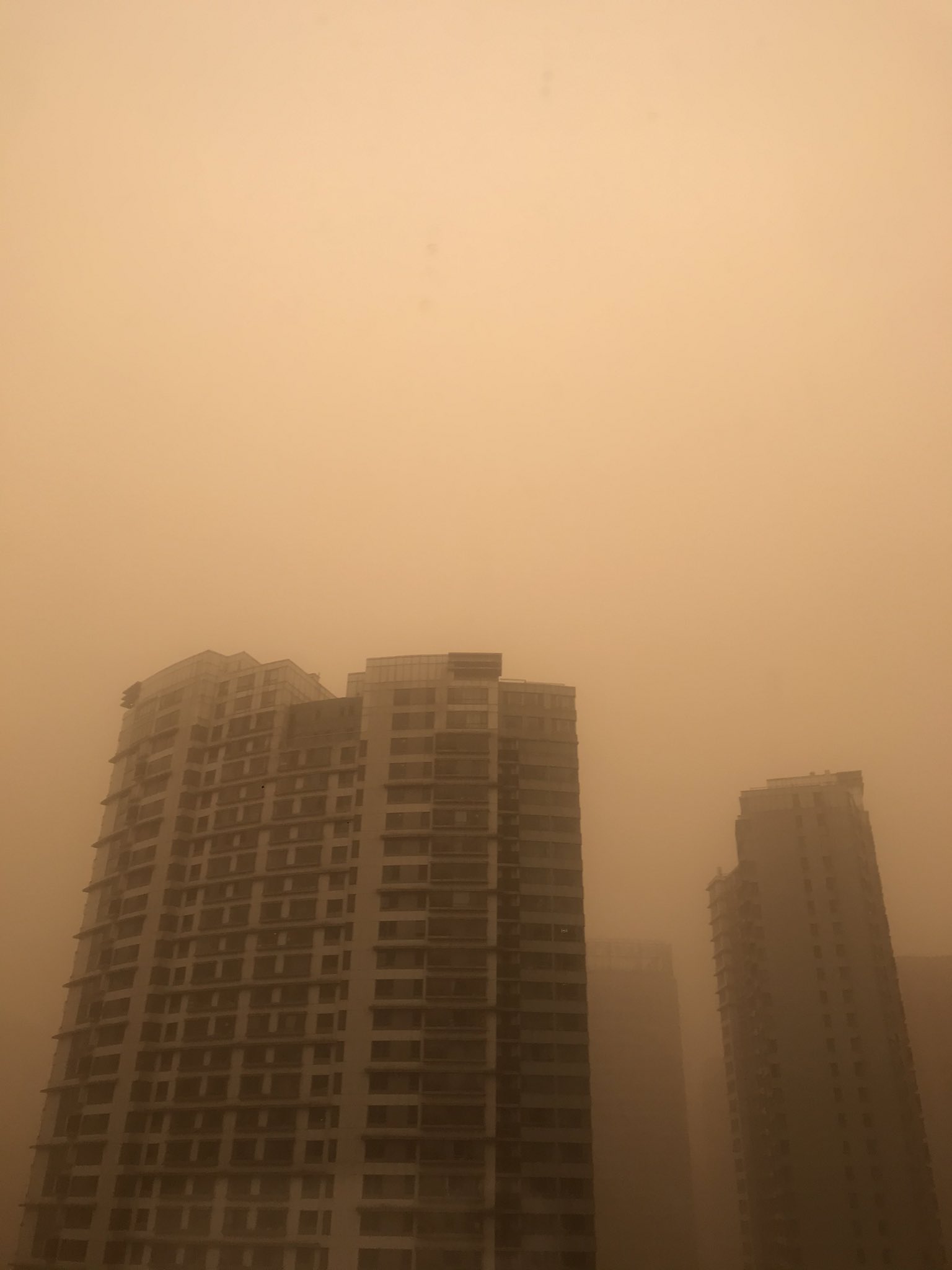 베이징 하늘 누렇게 뒤덮은 황사…올해 첫 경보 발령