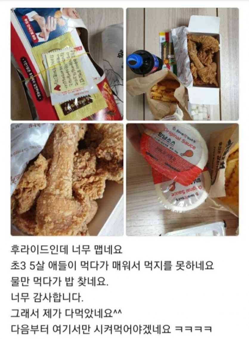 | Subject | 후라이드인데 너무 매워서 우리 애들이 먹질 못해요 |
