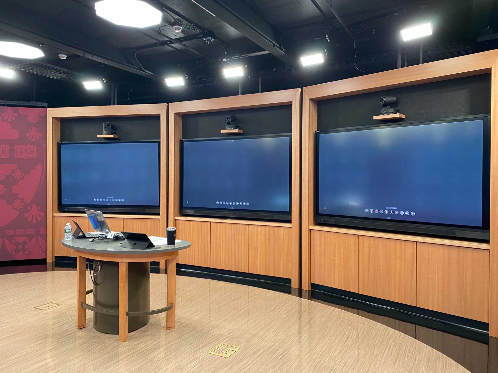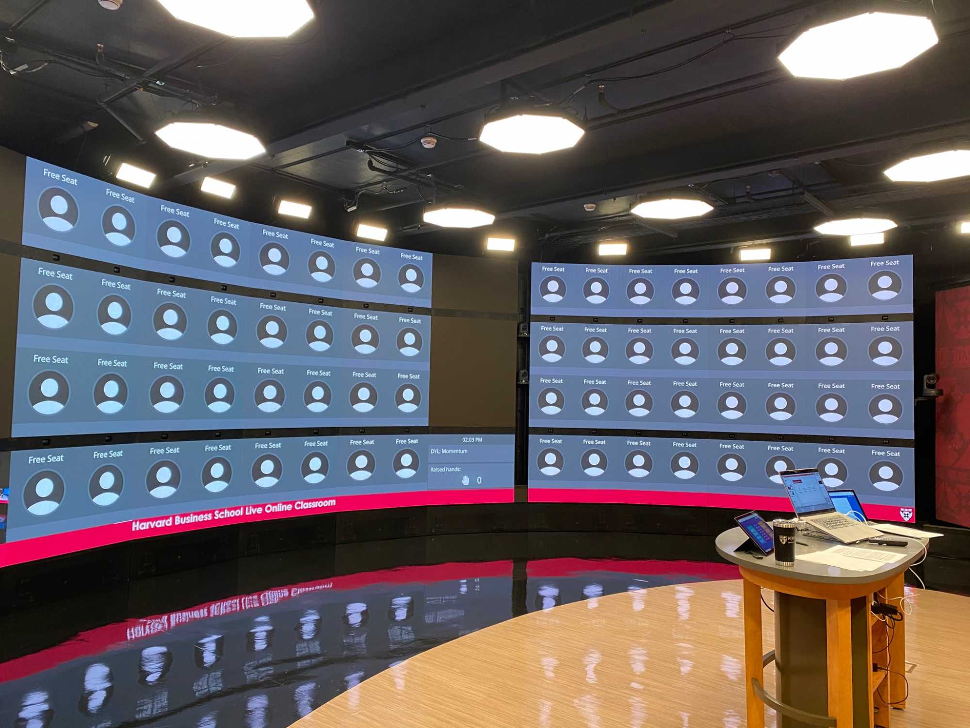 하버드 경영대입니다. 사실은 코로나19 이전에 온라인 코스(HBS Online, 구 HBX) 강의용으로 이런 강의실들이 만들어졌었습니다. https://online.hbs.edu/blog/post/hbx-live-the-first-year-infographic https://youtu.be/Fkd2lQVgwWI 0