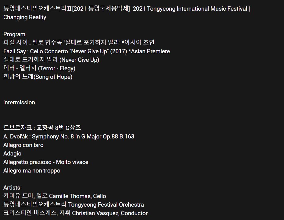 최근 코로나19 상황에서 박물관 등에서 혼자 공연해서 화제가 되었던 카미유 토마 등 외국인 연주자, 지휘자들도 이번에 우리나라 입국 후 격리 14일을 하고 참여했더군요.