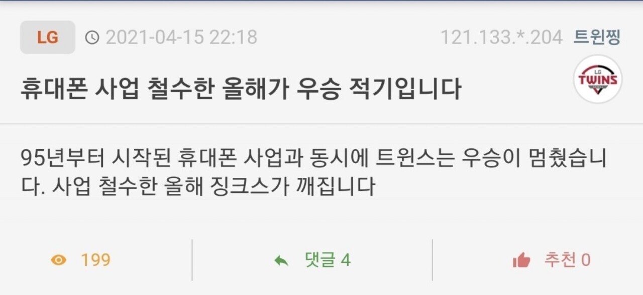 | Subject | 신빙성 있는 엘지트윈스 우승 적기 |