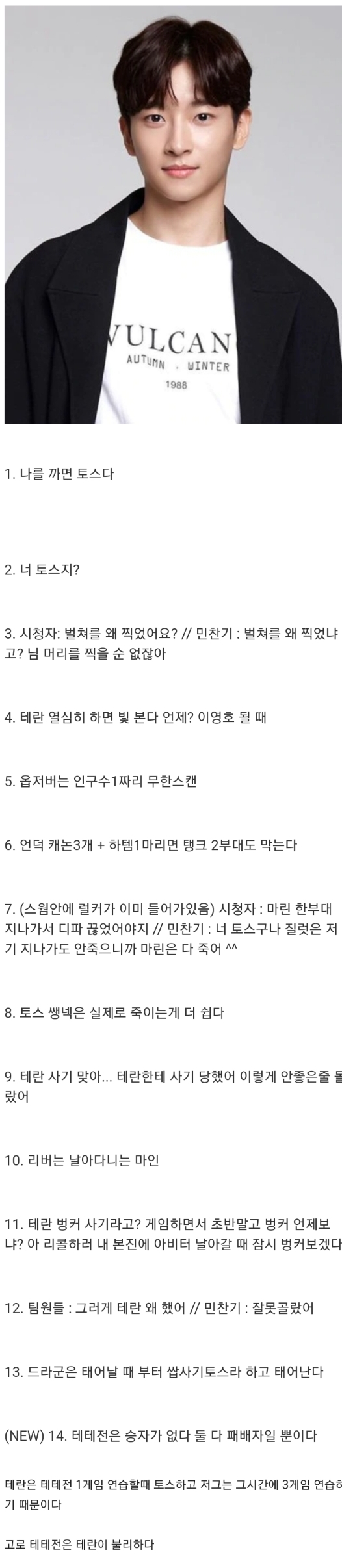 | Subject | 스타1) 민찬기 어록 |