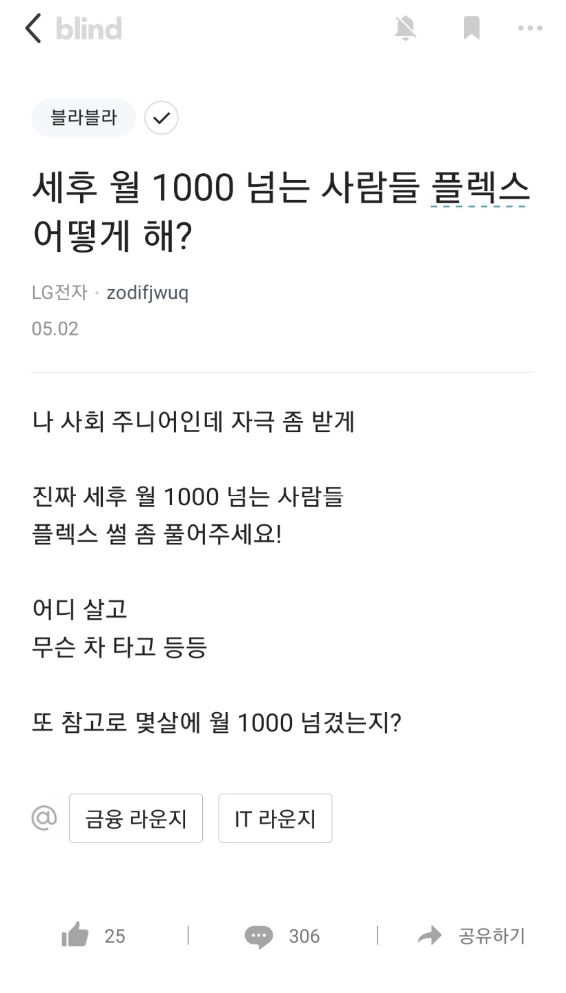 | Subject | 세후 월1000만원을 넘기는 사람의 flex |