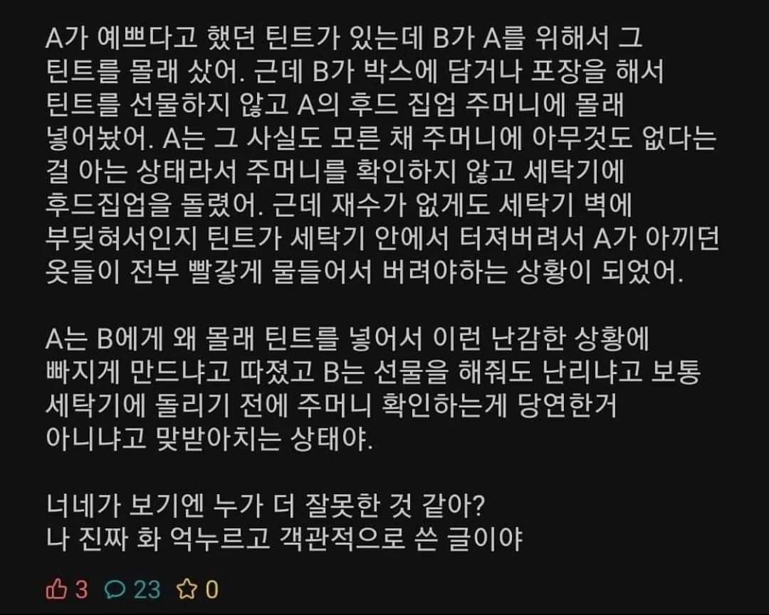 | Subject | A와 B 중 누가 잘못한 걸까요? |