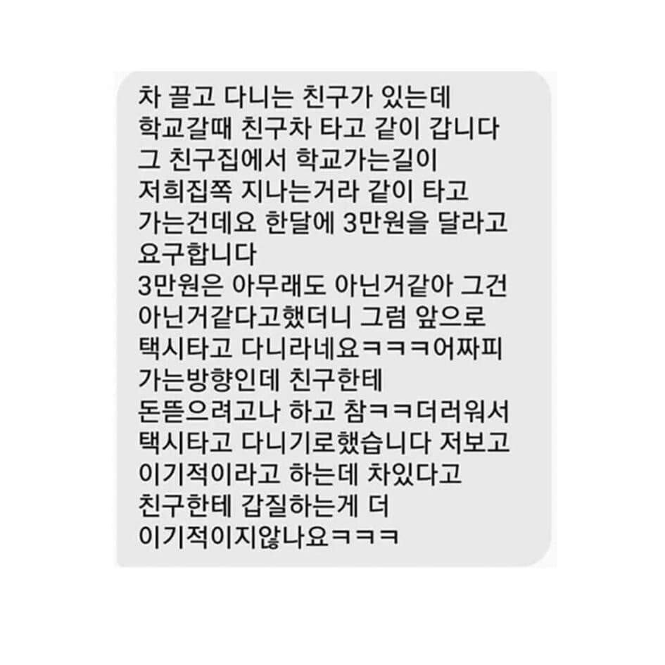 | Subject | 친구가 한달에 3만원씩 달랍니다. |