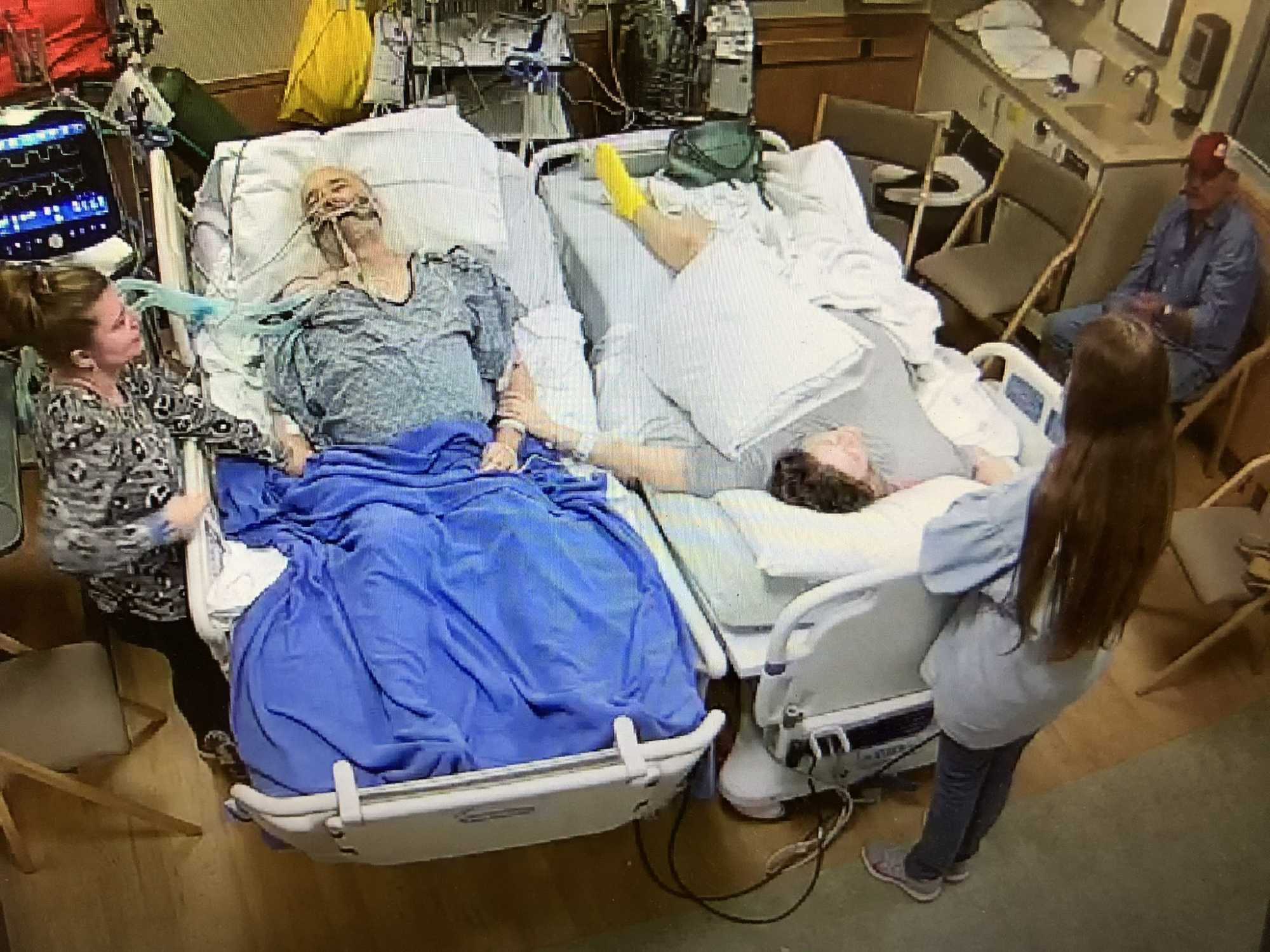 하지만, 상태가 너무 안 좋았고, 의료진들은 너무 쇠약해진 그가 저혈량성 쇼크가 심각해서 곧 사망할 것이라는 것을 알았습니다. 두 병원의 의료진들은 세상을 떠나기 전에 서로 만나게 해줘야 한다고 생각했고, 부인도 간절히 남편을 보기를 원했습니다.