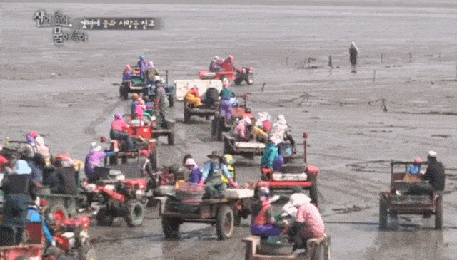 바지락철을 맞아 바지락을 캐러 경운기 타고 갯벌에 나가는 모습입니다 ㅋㅋㅋ