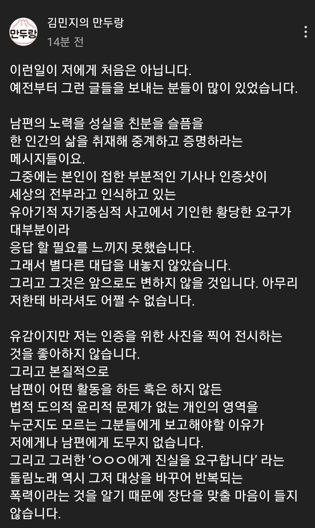 Subject   박지성 와이프 김민지 아나운서 입장문