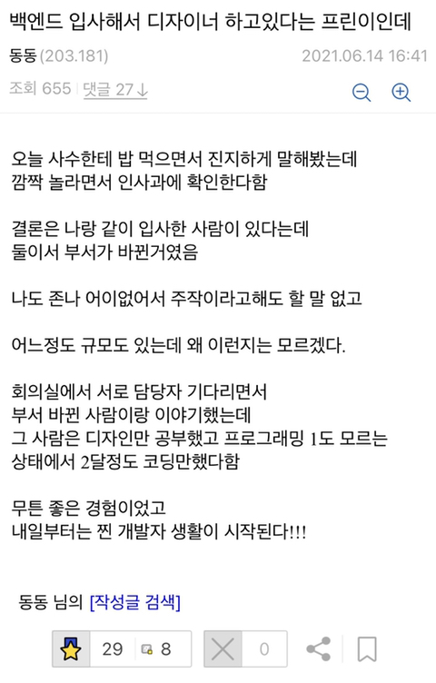 Subject   회사 들어가면 별 걸 다 시킨다더니..