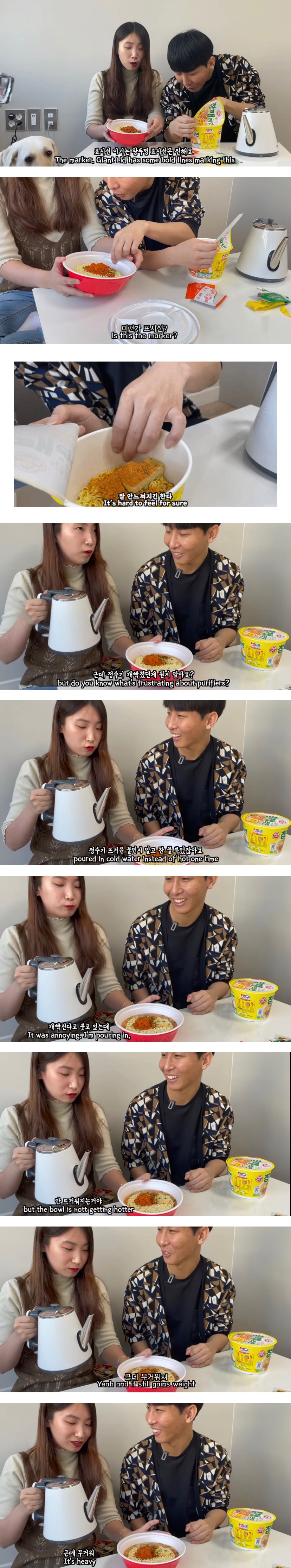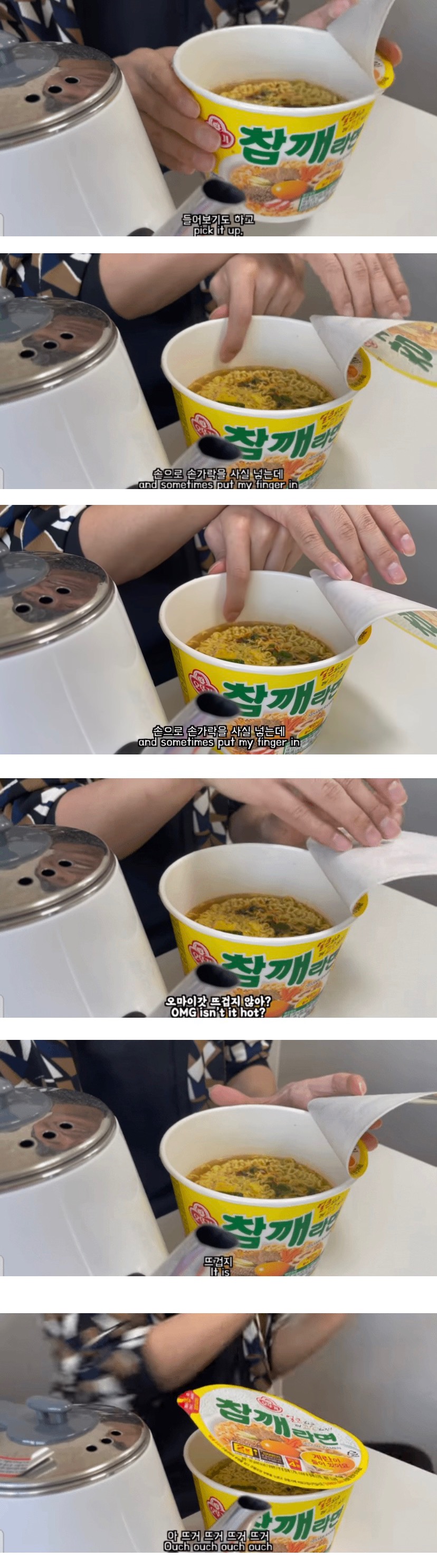 물이 받아지는지 안 받아지는지는 컵라면 용기가 무거워지는 것으로 안다고 하는 부분이 인상적이었습니다. 용기는 안 뜨거워지는데 무거워진다고..!!