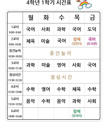 1. 창체가 몹니까? 2. 초딩이 영어를 배워? 3. 11시 30분에 점심? 4. 오전수업이 세개? 5. 중간놀이는 또 뭐야? 6. 1교시가 40분이라고? 리겐이는 그만 기절하고 말았어욤. 0